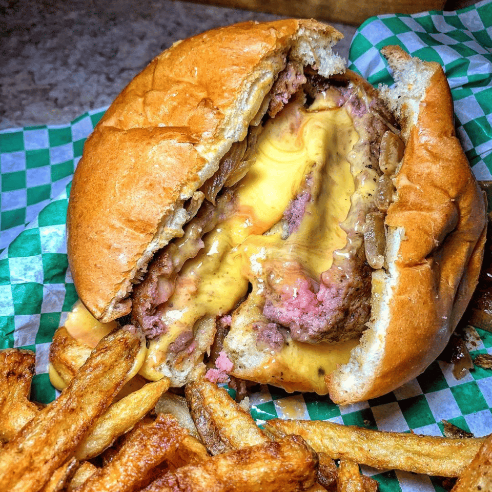 Thanks to Matt’s and the 5-8 Club, the Lucy is today as emblematic a Minnesota staple as the hotdish, Jell-O salad, or lutefisk, and any self-respecting dive bar or casual family eatery in the Twin Cities is likely serving them. At the Nook, in St. Paul, you can gorge yourself between bowling and skee-ball; at the Burmese-focused Mandalay Bay, the kitchen spices the patties with chapli and throws avocado into the equation; the Cajun Lucy at the Groveland Tap adds diced jalapeños to a pepper jack core; the Blue Door Pub hit the scene with a blue-cheese “Blucy”, and now serves a version with herbed goat cheese and blackberry sauce, and another with ghost pepper cheese, fried avocado, spicy bacon, and cilantro-lime sauce. At Wendy’s House of Soul, the Lucys come deep-fried. There are even vegan versions available throughout the city.