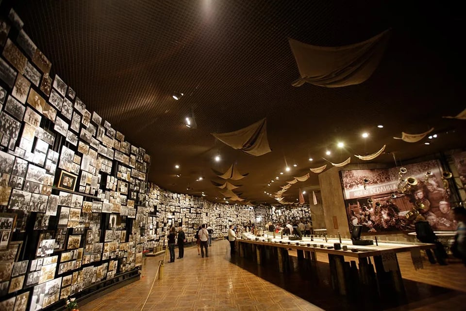 In the National Museum of the History of Ukraine in the Second World War, at the very end of a sprawling complex of sixteen exhibit halls, there is a final room, the last stop. It’s called the Hall of Remembrance, and there is no sound in the chamber but the rasp of scarves or the thump of visitors’ thick winter boots. When you enter the Hall, there is a welded tangle of bugles affixed to a wall, and, behind them, a mural devoted to all the pomp of victory, images of the storming of Berlin, the defeat of Germany in what many post-Soviet states still call the Great Patriotic War. But the bugles are silent: the rest of the room is dedicated to the price of that victory. A long, long table spans the massive room, set for a feast. In lieu of plates, there are death certificates; the walls are lined with six thousand photographs of the war dead. It is, as the museum notes on its website, “a symbolic funeral table”—echoing the Ukrainian tradition of feasting in memory of the dead—but there are no chairs; there is no drink; no laughter and no music; just six thousand dead, and their empty cups.