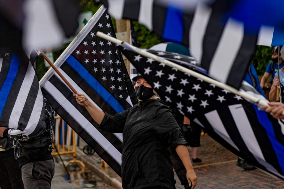 It's worth noting that police forces in America are near-uniformly aligned with the political right—and that the political right, in turn, have adopted the "protection" and "respect" of police forces as part of their cause. In response to Black Lives Matter protests against police brutality, right-wingers adopted the "Thin Blue Line" flag, a color inversion of the American flag that emphasizes the colors black and blue; New York Times columnist Jamelle Bouie has called it a "fascist flag," for its unmistakable alignment with state violence, and the accompanying rhetorical push for unquestioning obedience to the state.