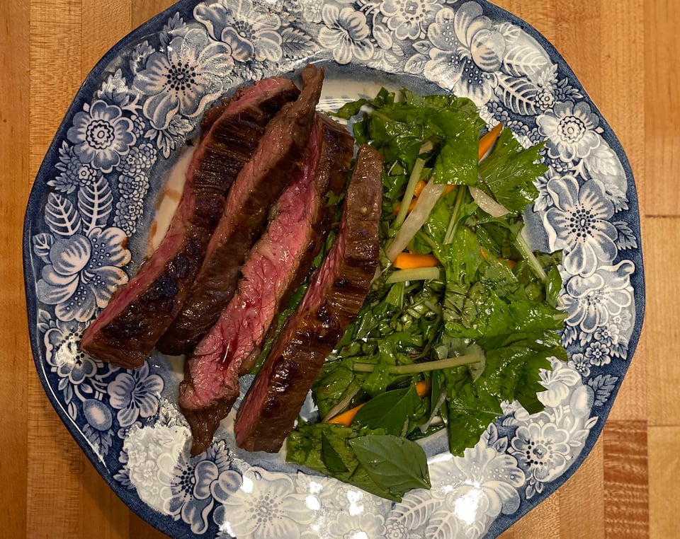 Elizabeth's mom visited, so I dropped by our butcher shop and picked up a skirt steak. And I really, really wanted to use our lemongrass (we rarely ever do!), so I made this marinade for it! It probably would go fine on chicken or tofu too.