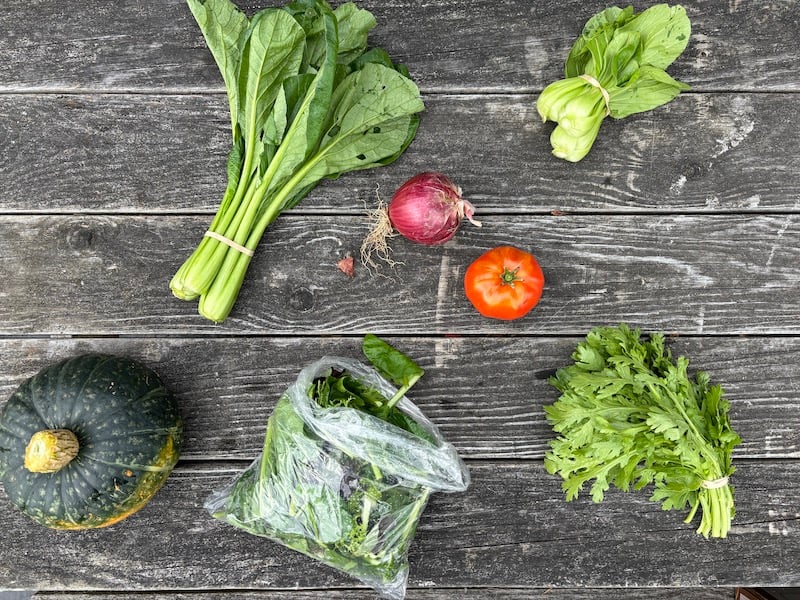 One note on your kabocha squash and subsequent winter squash: We harvested it straight from the field. Normally, when you buy squash at the store, it has cured for at least a couple weeks. To let your squash cure, put it in a hot, ventilated place for a couple weeks. That will prolong its shelf life and help develop its sugars. If you aren’t able to cure your squash, eat it sooner rather than later.