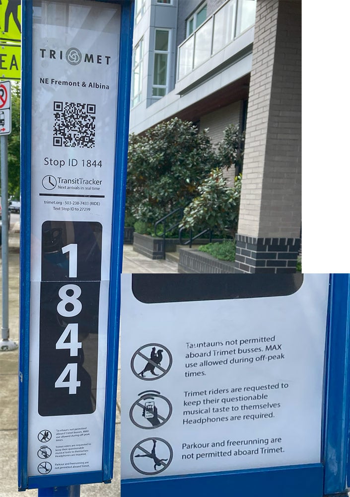 I had attached my homemade signs, printed on waterproof paper, with painter’s tape, so as not to leave a mess. A Trimet employee later took my sign off and installed it inside the box! Made my day.