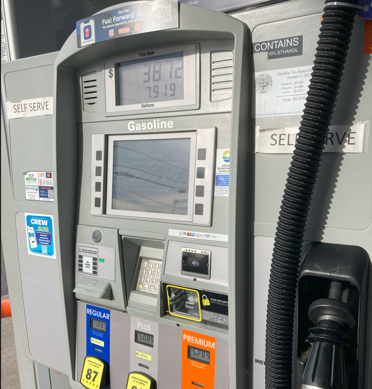 In the Portland suburbs, an attempt to fill my tank led to this unfortunate scenario. The attendant (Portland and New Jersey still have them!) saw me walking briskly away from the pump, and showed me which button to push to mute the infernal sound. He said, "When they installed this, I had three choices: find another job, be in a straitjacket, or figure out how turn it off." I thanked him profusely, as he is my hero.