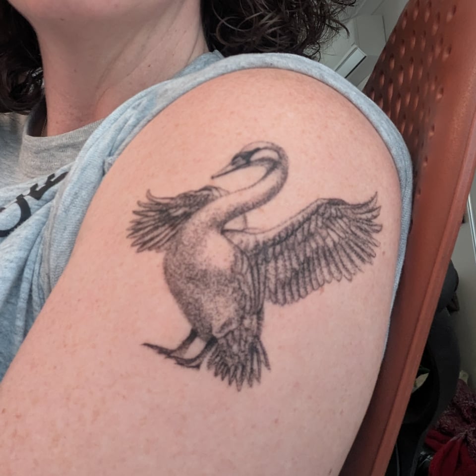 I got a swan tattoo for him this year, too. He loved swans, and I thought this one seemed particularly magnificent, as he was.