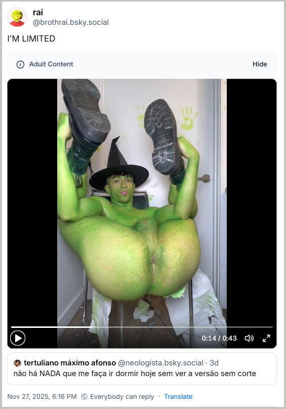 E como a natureza está se recuperando a todo vapor por essas bandas, o Bluesky parece também estar caminhando para os seus tempos primórdios, nos quais um dildo provoca uma verdadeira odisseia, principalmente quando some. Na semana passada, nenhum dildo roxo foi passear, ao menos não tivemos notícias da nossa Prefeita nesse sentido, mas apareceu um novo exemplar na skyline, e que rendeu uma sequência de interações que fez a gente rolar de rir: