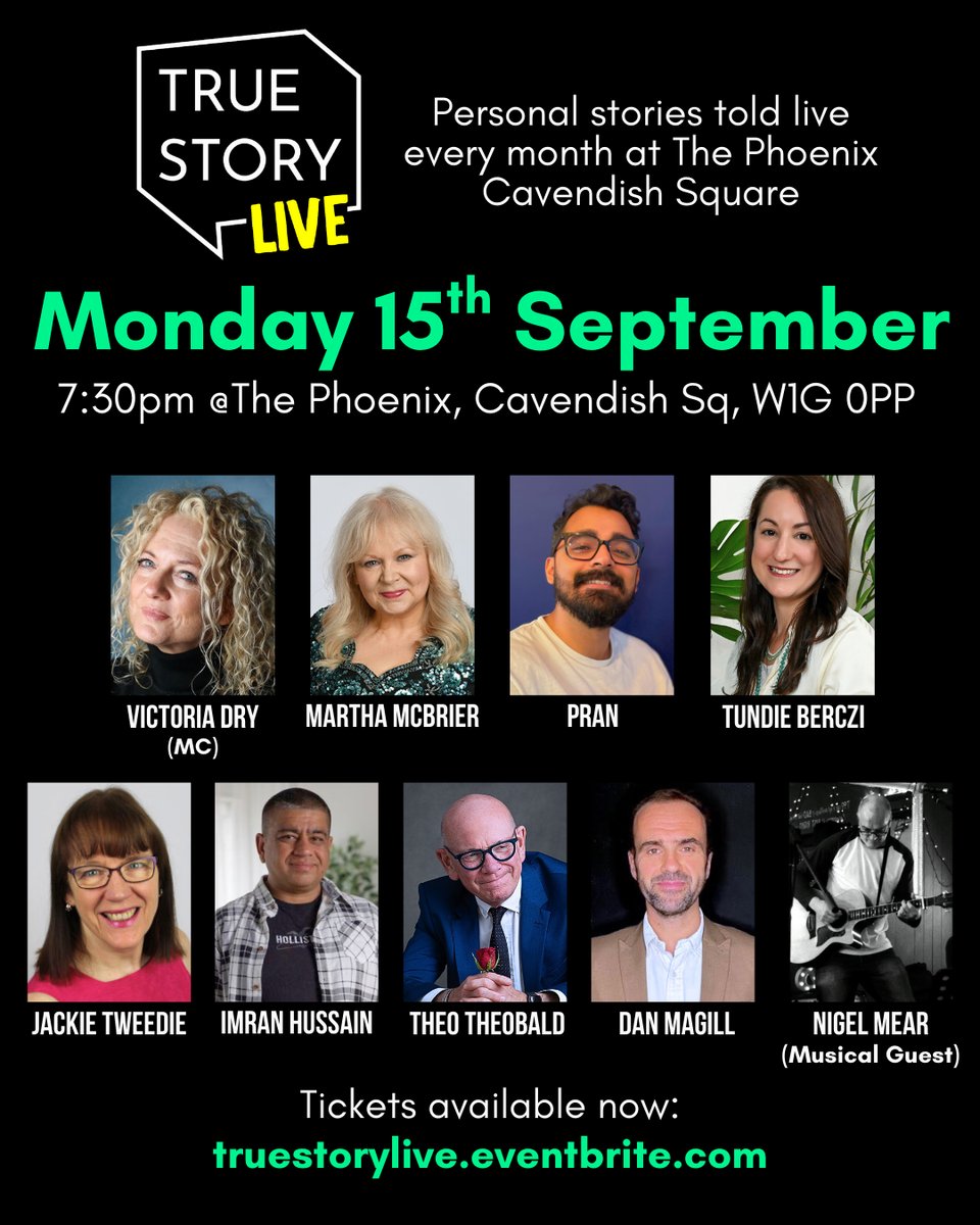 We’re back with another incredible night of true, personal storytelling on Monday 15th September - and our lineup is something special. Expect big laughs, raw truth, twists and turns, and a dash of beautiful live music.