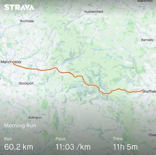 The other day I walked from Sheffield to Manchester with my university housemate.