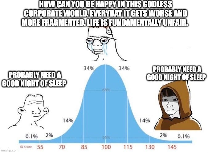 How I see it, the skill is to learn to notice where doing the above would actually be worth the lessons and experience. There are a lot of places where the simple is better; most places in fact, but not all. Sometimes we can sacrifice the streamlining, be a bit of a midwit and go through an experience to learn its lessons first-hand.
