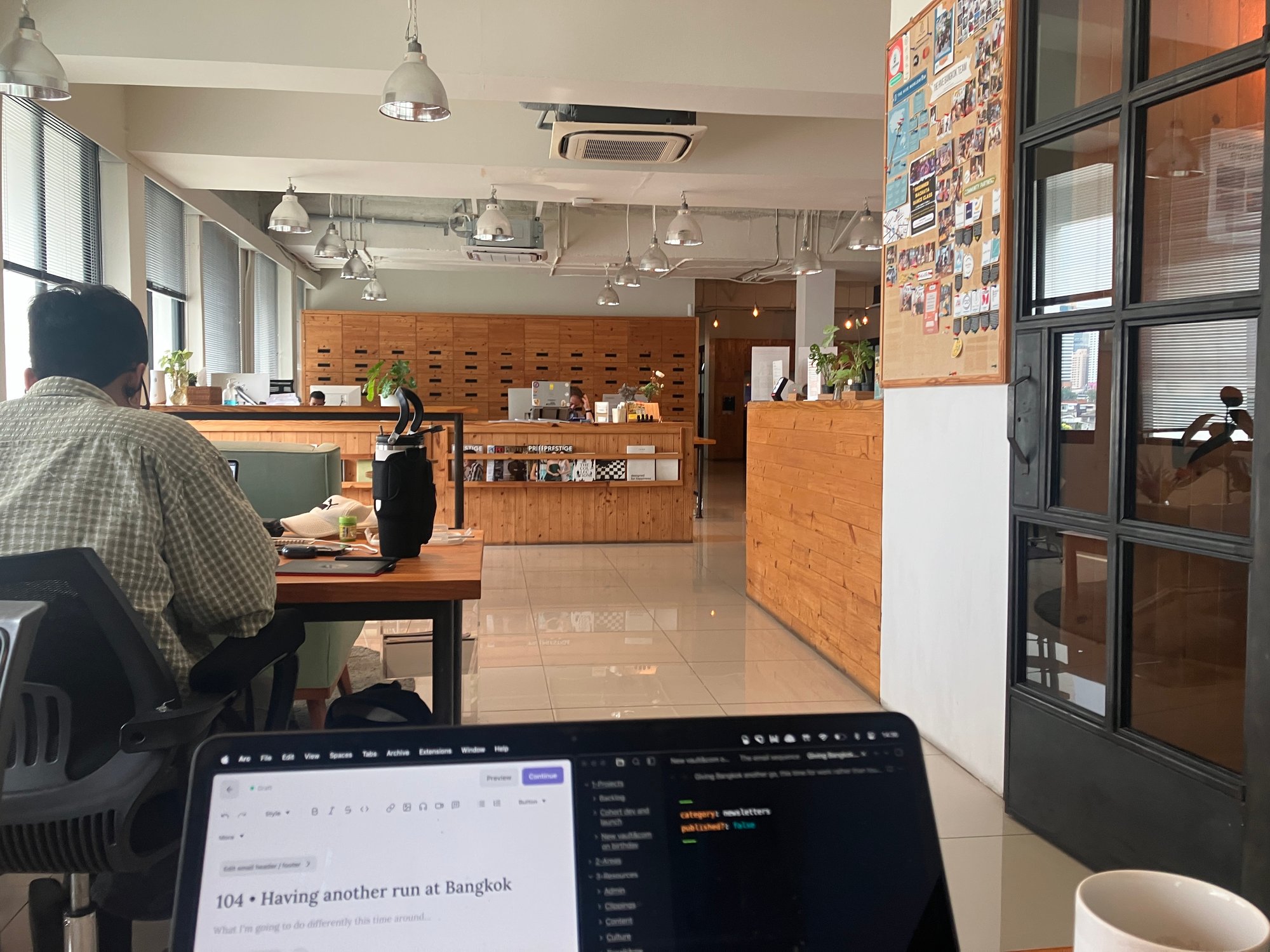I’m writing this from a co-working space, with a food prep service very close by, and (supposedly) the best gym in Thailand lined up for when I finish.