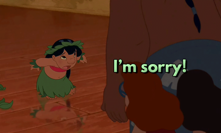 This is vague, demanding, and so evidently panicked that it immediately makes the apologizer’s feelings the focus, leaving no space for the apology recipients. Don’t be like Lilo.