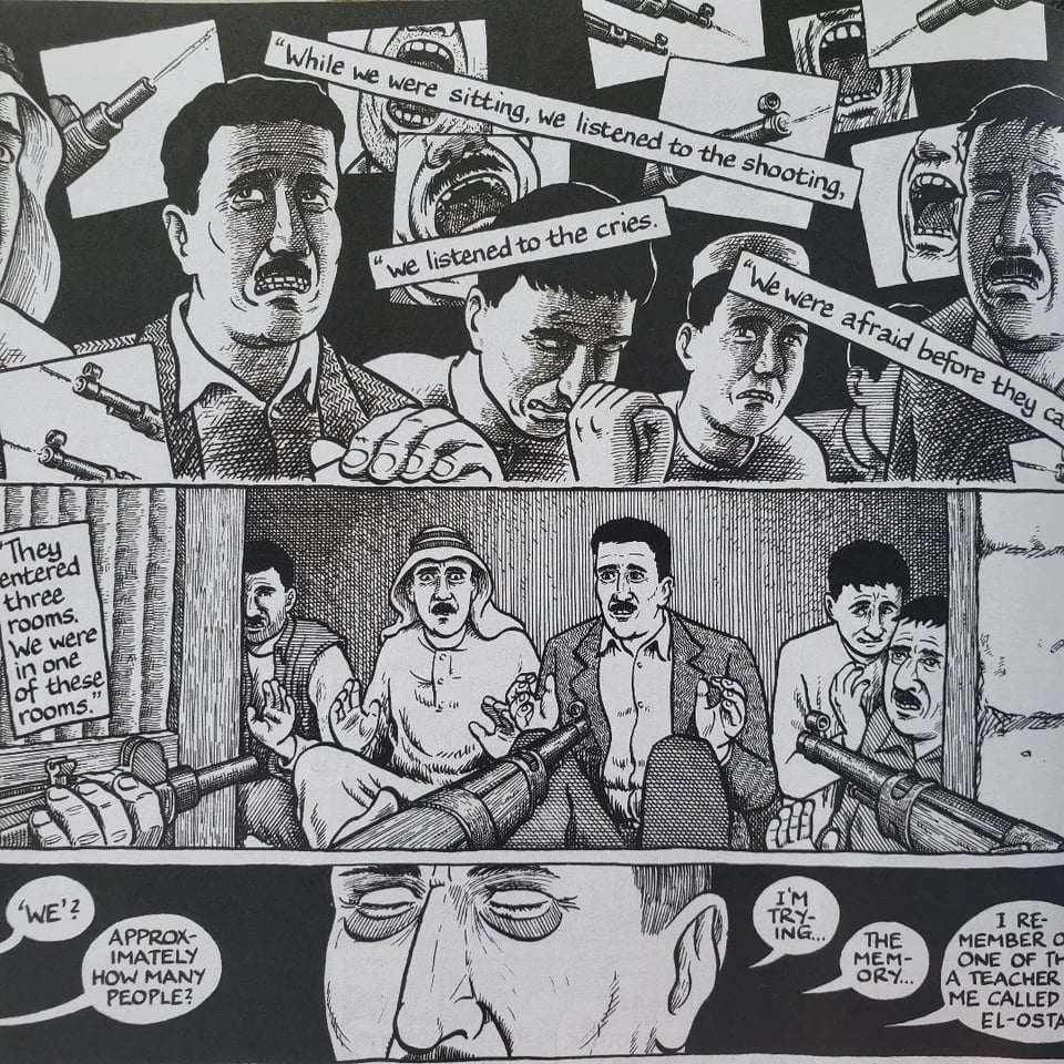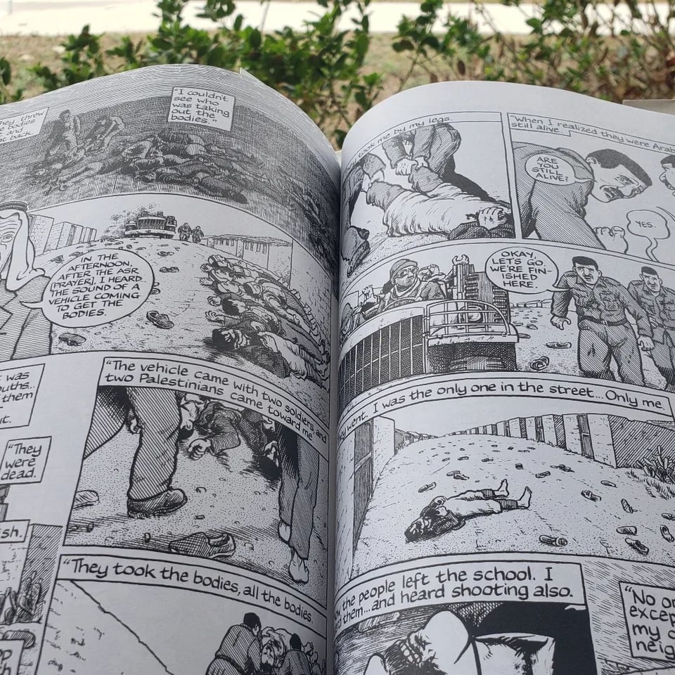 Sacco is a comics journalist and he’s known for his dense, book-length graphic narratives about conflicts around the world. Footnotes in Gaza is his second comic about the experience of Palestinians living under occupation. (His first, simply titled “Palestine,” has been recommended on bookstagram a lot recently. It’s good, and you should read it, but Footnotes is both less visible and more consequential.)