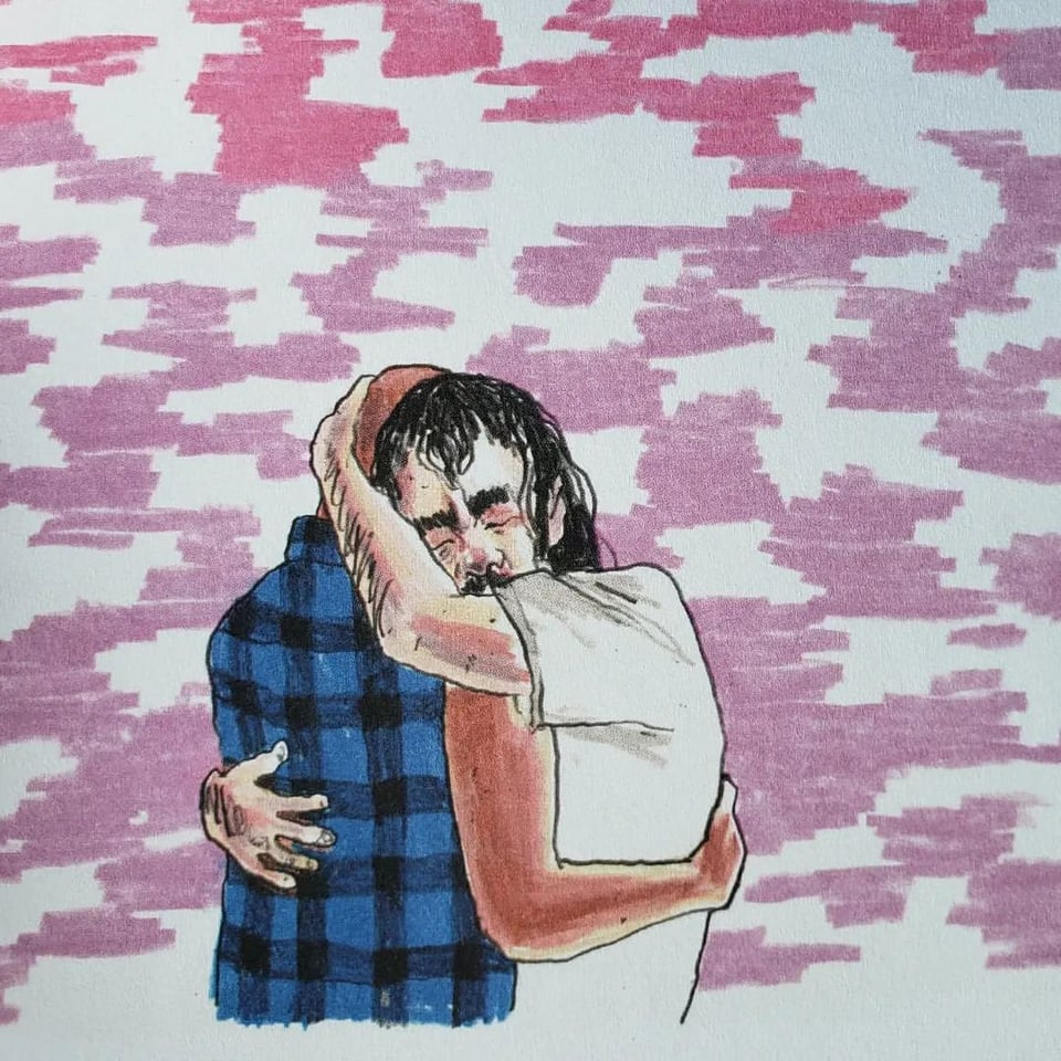 So what appeals to me most about Cole Degenstein’s graphic novel is how physical the drawings are. Anyone who has ever used colored pencils knows how much effort it takes to fill a page, and you can feel that labor when reading this book. The colors — lots of orange and pink; a palette of rising and setting suns — are beautiful; the pages that are mostly black feel dense and heavy. The book is brief but has weight that transcends its size.