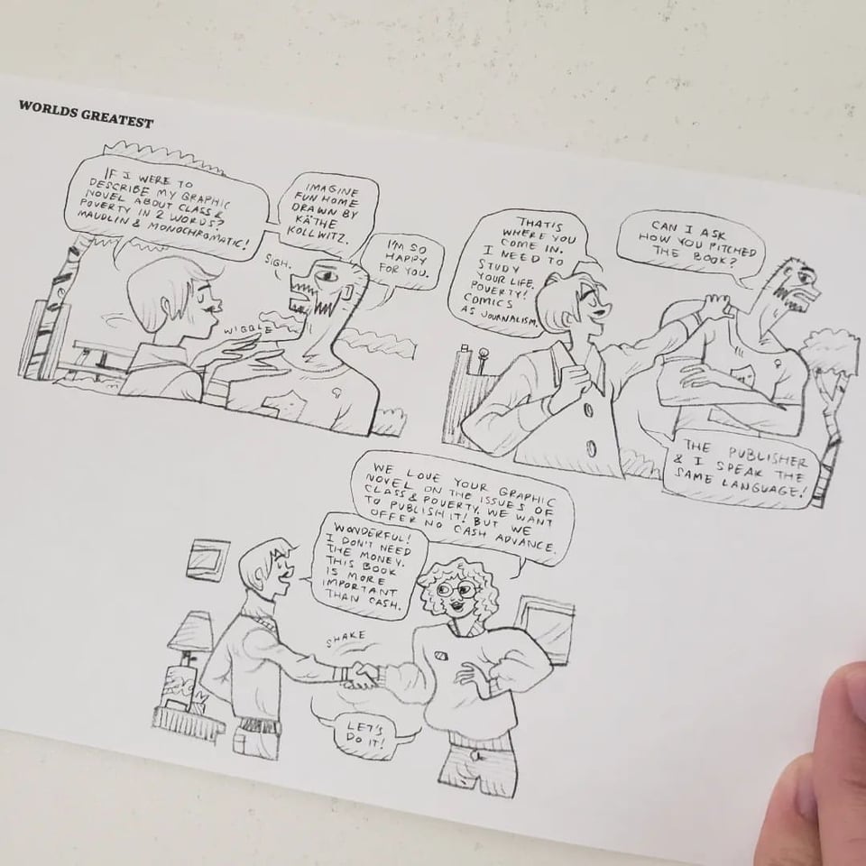 This is a self-deprecating, brilliant collection of comics about making comics when you are broke and stressed and raising three kids.