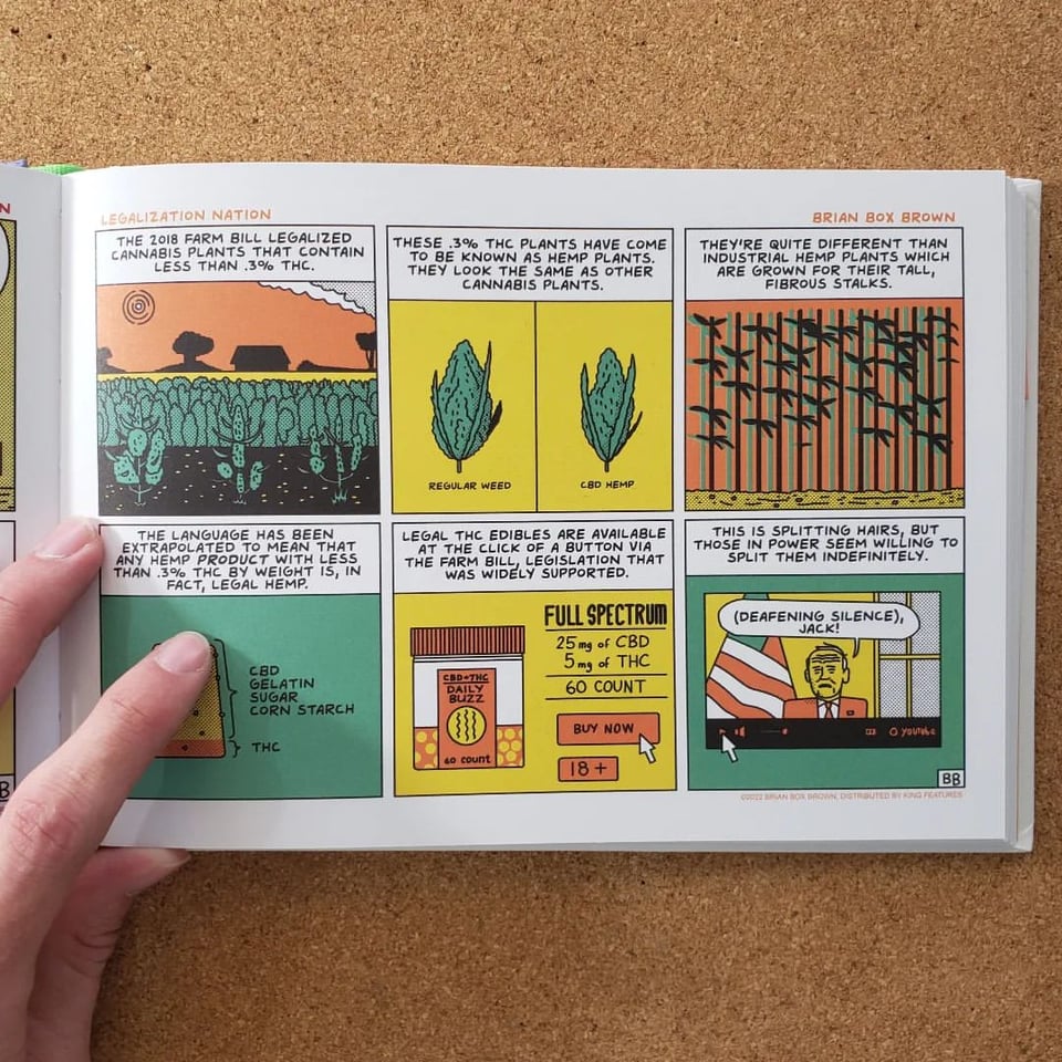 Legalization Nation, published earlier this year, collects Brian Box Brown's ongoing coverage of the chaotic, shifting legal terrain for cannabis. The book is good though the reading experience is a bit fragmented. That’s an inevitable consequence, I think, of Brown's dogged commitment to regular documentation, through weekly comics journalism, of a rapid paradigm shift in how this country treats weed. A book that tried to tell a definitive narrative now, before the dust has settled, would quickly become (as Brown puts it) "horribly outdated."