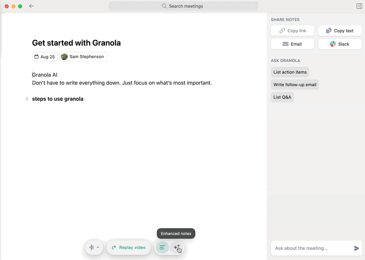 Instead of focusing on writing down every word, I just quickly take note of what’s most important — and Granola takes care of the rest.