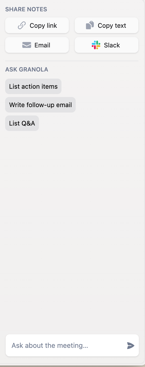 Instead of searching the transcript for a question, I just ask Granola and it searches for/finds what I’m looking for!