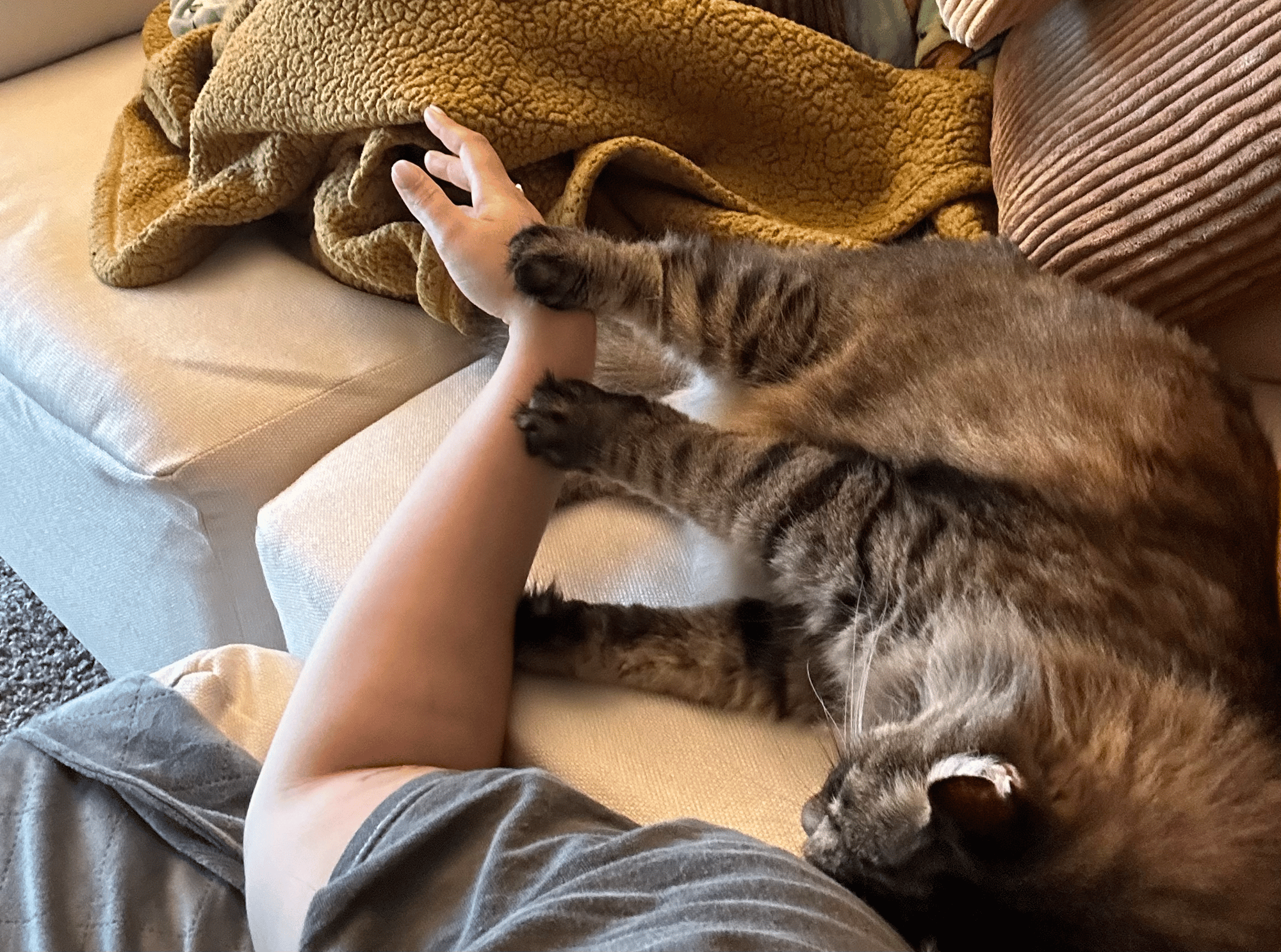I joke that Kitty has taught me a lot about boundaries in the two years we’ve been together, but I honestly mean it. The last time I got my nails done, the nail tech looked at me and asked, “Do you have a cat?” because of how scratched up my hands were. He gets it.