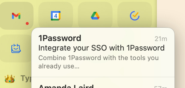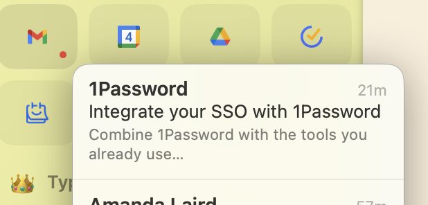You can hover the pinned Gmail or GCal icons for previews of upcoming calendar events or new emails.