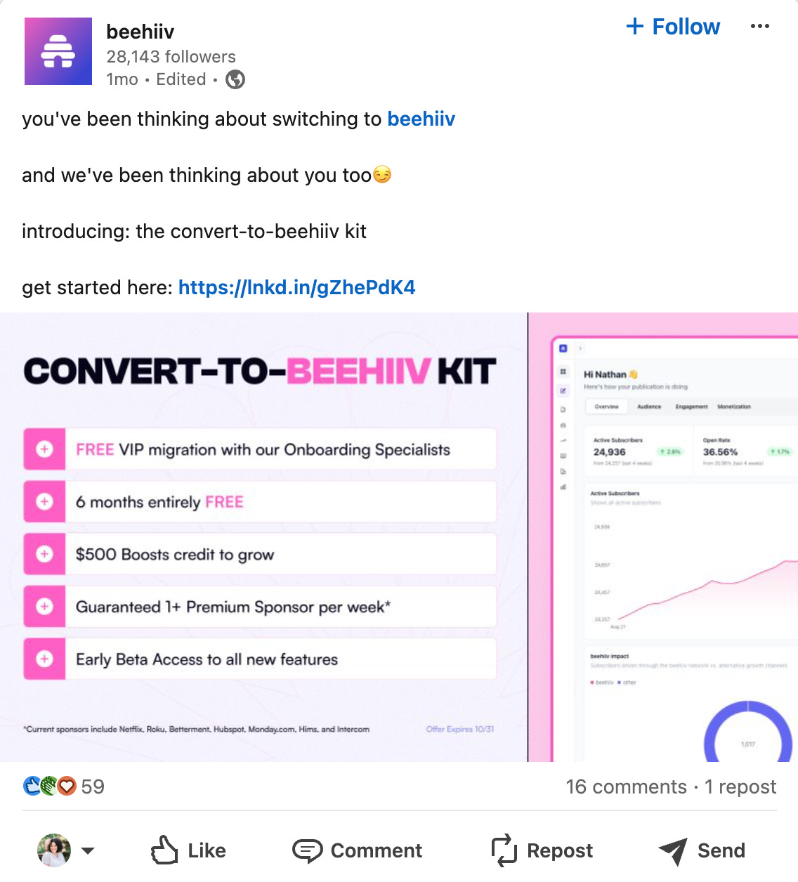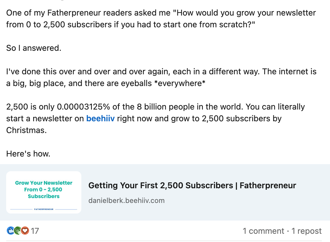 I had the idea for this post months ago after seeing a sixth Beehiiv sponsored post on my LinkedIn feed.
