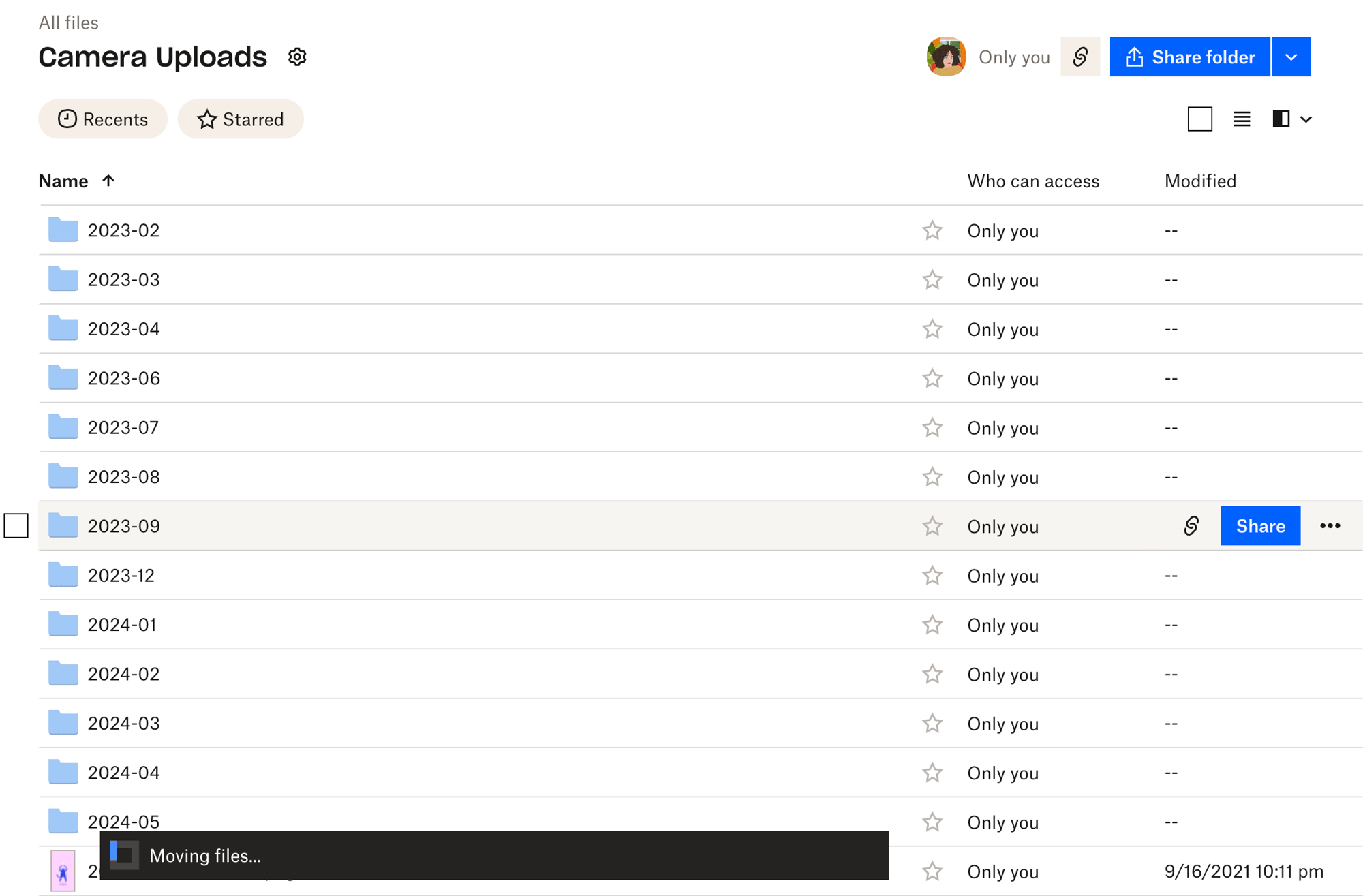 Voilà! Your Dropbox housekeeper gets to work, grouping all of your files by date.