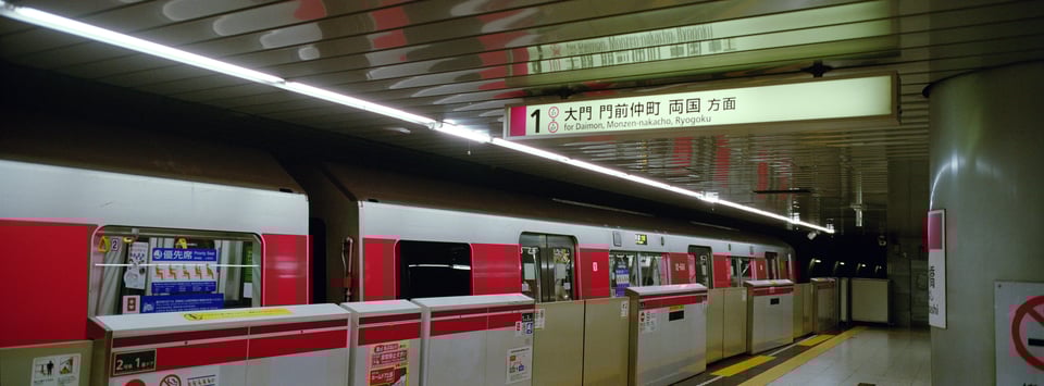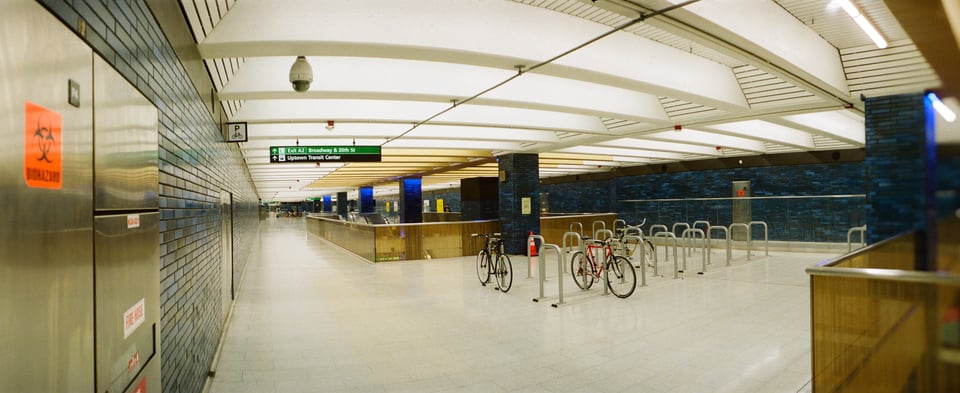 The way that panoramas open up interiors, widening spaces to be more as our eyes experience them, captures something absolutely delightful from the often crammed interiors of subway systems. As I look back through these images in order to write this, I’m frequently taken by how the stretching and compressing effects of the swing-lens Horizon add a very depersonalizing feeling to these spaces, while the flat images of the XPan create what I feel is a timeless and “honest” feeling in the same locations, appearing almost documentary, but still nostalgic. I think both moods often resonate with people. Transit and our cities aren’t a utility which transports us to a destination, we get upset when we’re late, we hide tears in the back of the bus when we’re having a terrible day, we bond with the bright colors of trains after years of companionship with them, we find our favorite seats. We are always our whole selves, we live our whole lives inside this world, and these spaces should be captured with the fullness of that experience.