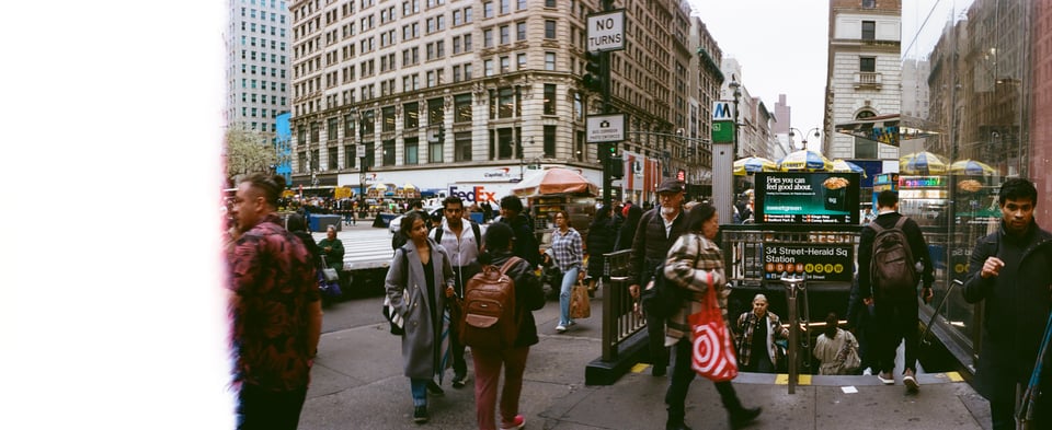With the Horizon, I captured my movement on narrow platforms, I pushing right through the middle of people, bumping shoulders with everyone else waiting for a train. The movement of the cars creating exaggerated blends of color just as they had done so interestingly in London and Berlin, leaving long trails of light if the train travelled left-to-right along with the the fixed direction of the swing-lens’s motion, or compressing them into smushed shapes in the opposite orientation. The darkened spaces of Chambers Street captured the same ominous mood I’d loved from some of my photos in Berlin and San Francisco. Lonely photos late at night moved me deeply. Grand Central felt like a paradise with its scale, detail to be found in every corner. Busy crowds raced every which way, and with one swing of my lens, I’d capture them, before hopping on another train to go across town and find more busy people to lovingly get right in the way of.