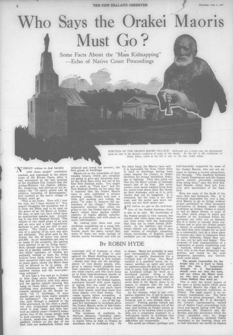 ‘Who Says the Orakei Maoris Must Go?’, New Zealand Observer, 8 July 1937