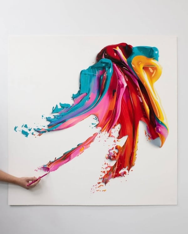 Lo que hace esta persona a nivel de arte contemporáneo es muy loco, pero que haga hiperrealismo de cosas abstractas como una mancha de pintura me parece rizar el rizo.