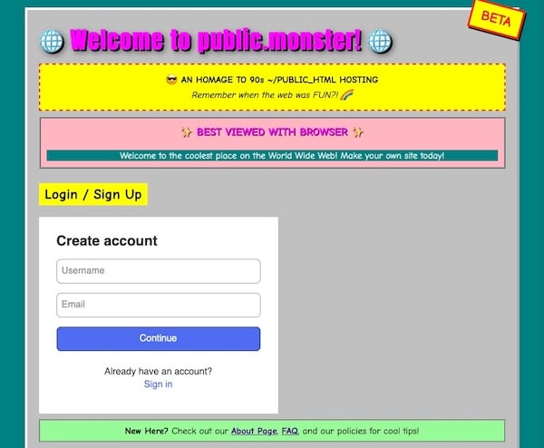 Es un alojamiento web, pero está posicionado como simple, noventero y feísta. Porque incluso a la hora de prestar un servicio commoditizado es posible diferenciarse o defender algo. Este caso, nostalgia pura.