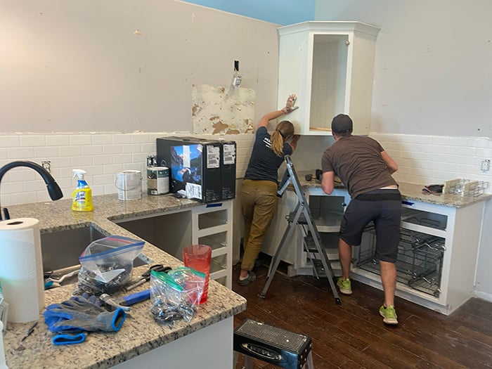 After researching on Craigslist and Facebook Marketplace, I wasn’t convinced anyone would want to come buy my cabinets, but didn’t want to just toss them in the dumpster. Even with their faults, there was a lot of value left in them. I listed some photos and on a whim posted that if anyone wanted to come help us remove the rest of them they could take everything for a steep discount.