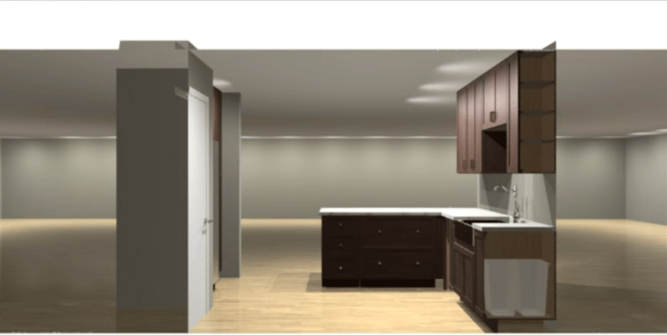 Here are some computer mockups because those are easier to visualize — ignore the ceiling, it’s vaulted in here: