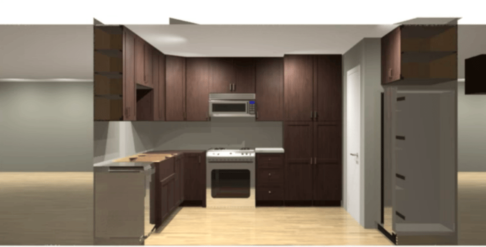 La décorateur has a trash pull out to the right of the sink but that will be a bank of drawers instead. Where will we put the trash? I don’t know, but the last time we had a trash pull out in a cabinet all my family members complained nonstop about it and the cabinet door got hella beat up. So we will continue to have our trash receptacle out in the open like Philistines.