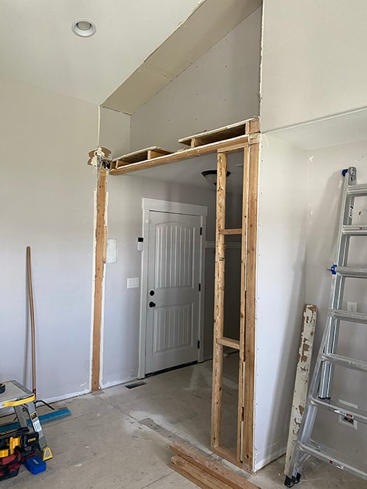 Tomorrow I’ll put together the pocket door hardware — I ordered this Rocket brand pocket door kit because the internet said it was the best one. The helpful neighbor will come back Monday as well, and help me get that in place and finish the framing.