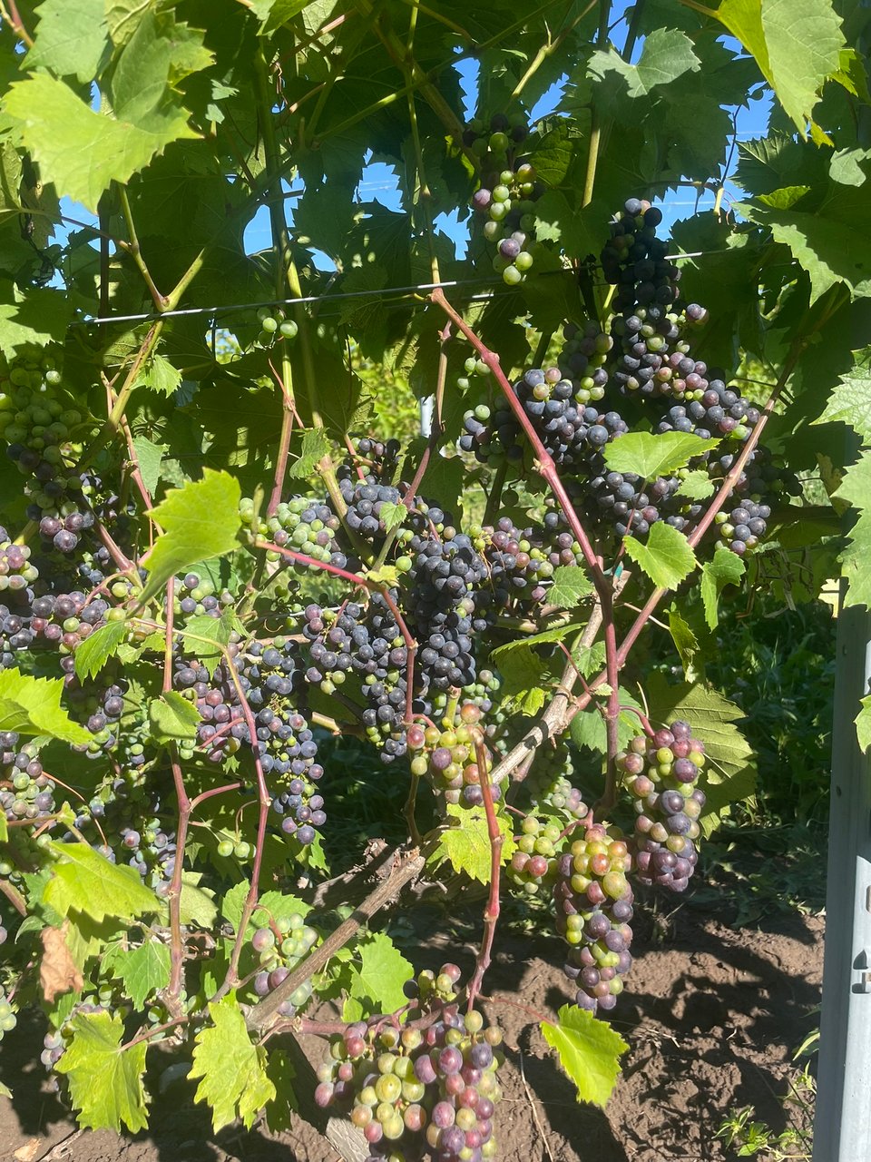 C’est la dernière étape de la saison en ce qui a trait aux “travaux en vert” de la vigne. Ce qu’on entend ici ? De tout le travail de l’éclosion des bourgeons jusqu’à la récolte : ébourgeonnage/épamprage, relevage, désherbage, pulvérisations, effeuillage. Cette semaine, on termine d’effeuiller les derniers rangs manquants, on fait un petit coup de désherbage, on fait une tonte des entre-rangs et puis, le grand moment tant attendu, on pose les filets qui protégeront les raisins des oiseaux et des coccinelles. Généralement, les filets posés, on arrive à ralentir un peu le pas pour recharger les batteries en vue des vendanges qui commenceront à la fin septembre. N’en demeure pas moins qu’on a du vin à embouteiller, des travaux de palissage à faire et un bon de pioche à donner dans les jeunes vignes.