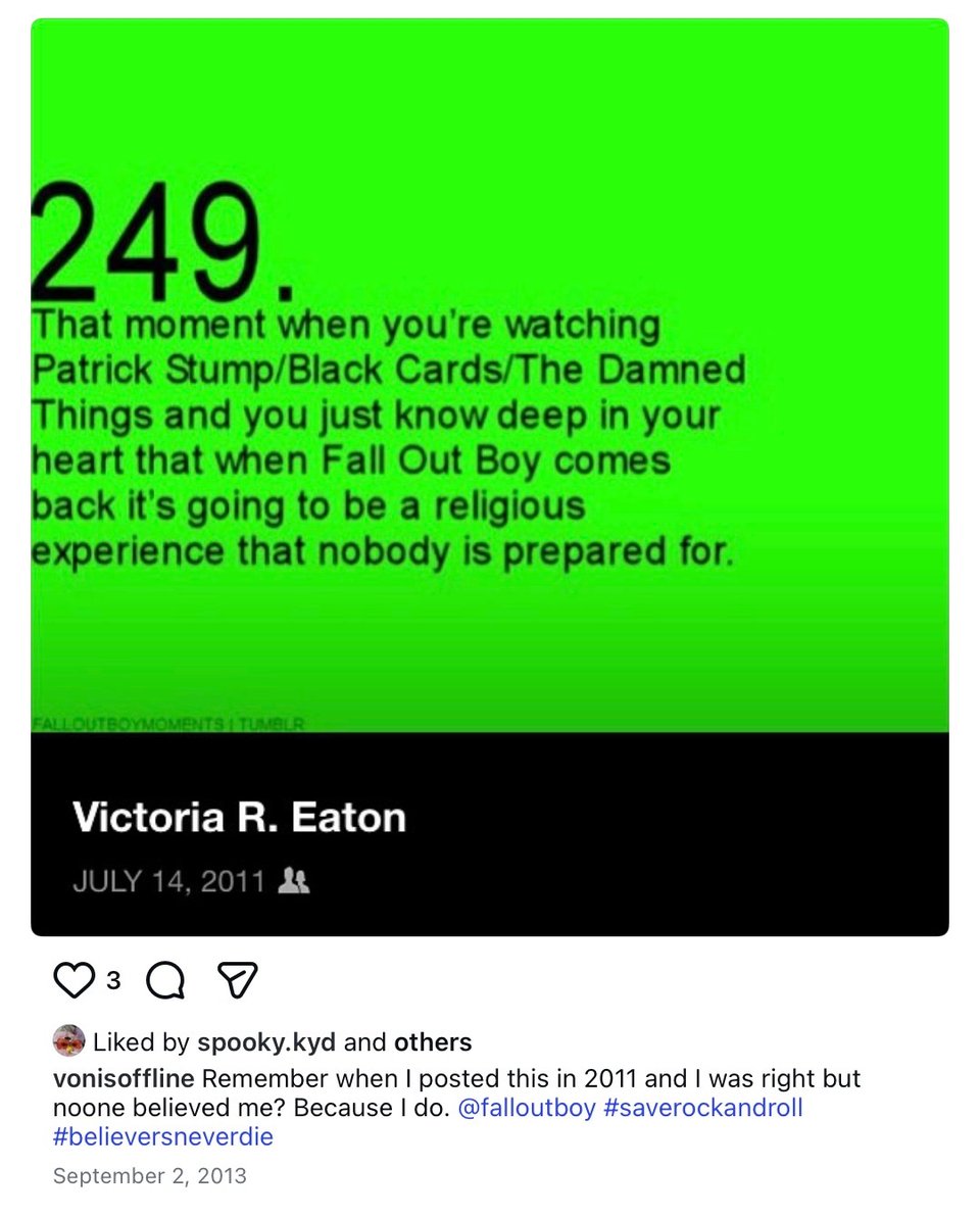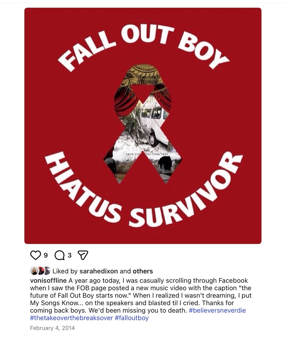 on february 4, 2013, i was a pre-law student in tobacco country, sitting in a 200-level political science class on foreign policy in the middle east. i was strung out, hungover, and bored out of my mind. i was scrolling my facebook and saw a post from the official fall out boy page with no text, just a link to a youtube video. my surface thought was, “surely they’ve been hacked.” but in my spirit, i knew. i knew pete would come back like this. no fanfare, no warning, just a link and a prayer that people still cared.