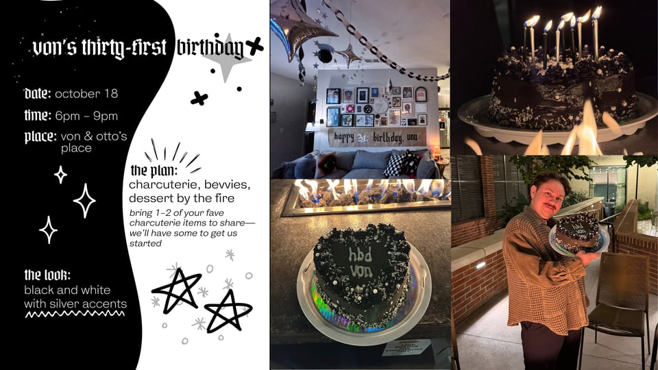 okay i’m ready to talk about my 31st birthday now. but first! my incredibly supportive, endlessly patient, unbelievably thoughtful life partner threw me a birthday party at home full of charcuterie and bespoke cocktails.