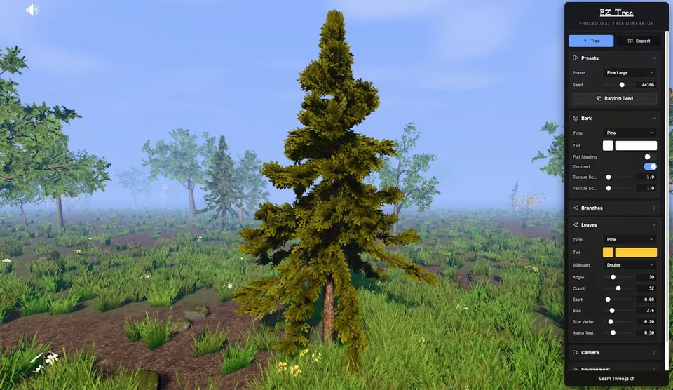 Grass and trees transform simple projects into living worlds. Thanks to Dan Greenheck and his EZ-Tree generator, generating customized royalty-free trees doesn’t require you to open Blender or buy another asset pack!