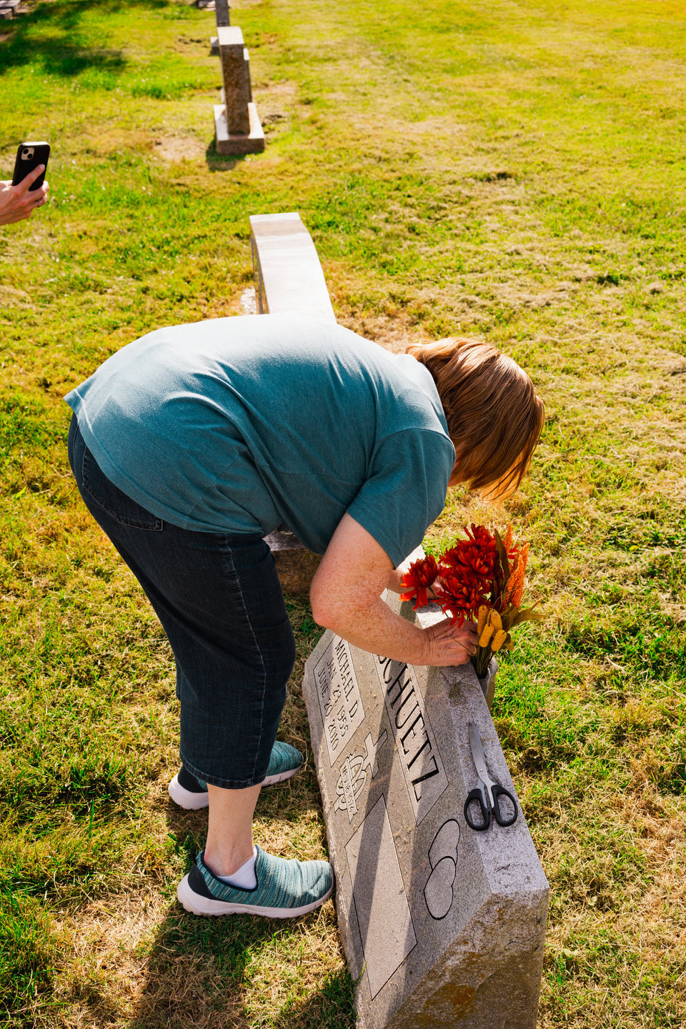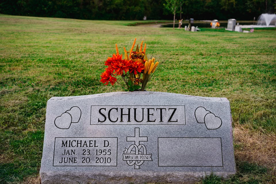 Juanita brings a new seasonal decoration for Michael’s gravestone — swapping out summer for autumn. We each pitch in, arranging the faux flowers and cute owl adornment to withstand midwestern weather events. I notice the empty spot next to Michael’s details on the marker: a placeholder for Juanita. A future not yet written. It might strike some as eerie, but I like to read these tablets not only as monuments to people we love but also to appreciate the historical implications.