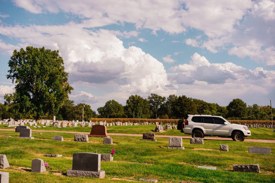 Today, we’re in Belleville, Illinois, where Jen spent most of her childhood. Michael was laid to rest in Walnut Hill Cemetery, an easy, short drive from Jen’s mom’s (Juanita) current residence. The three of us are here to pay our respects.