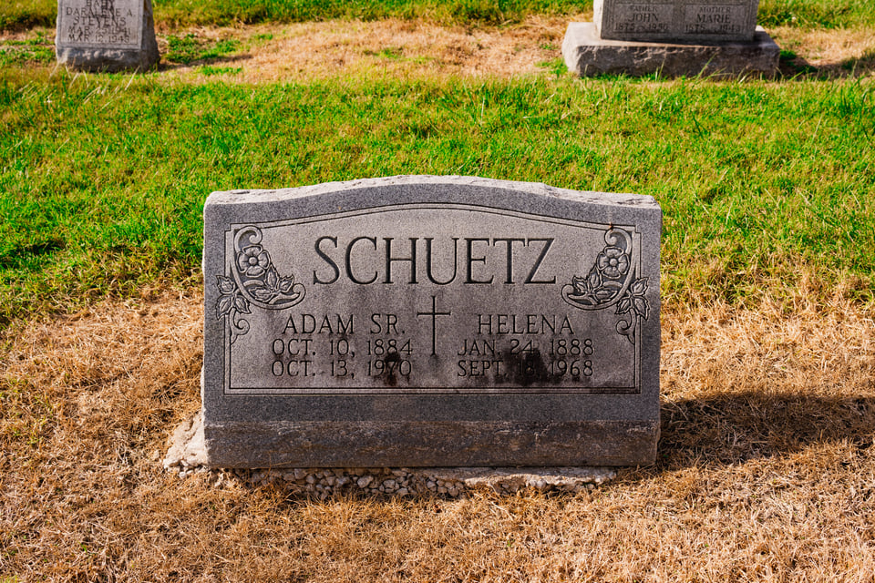 Adam and Helena Schuetz are close by, Jen’s great-grandparents, and likely the Schuetzes who immigrated to the US from Germany. The dates inspire awe.