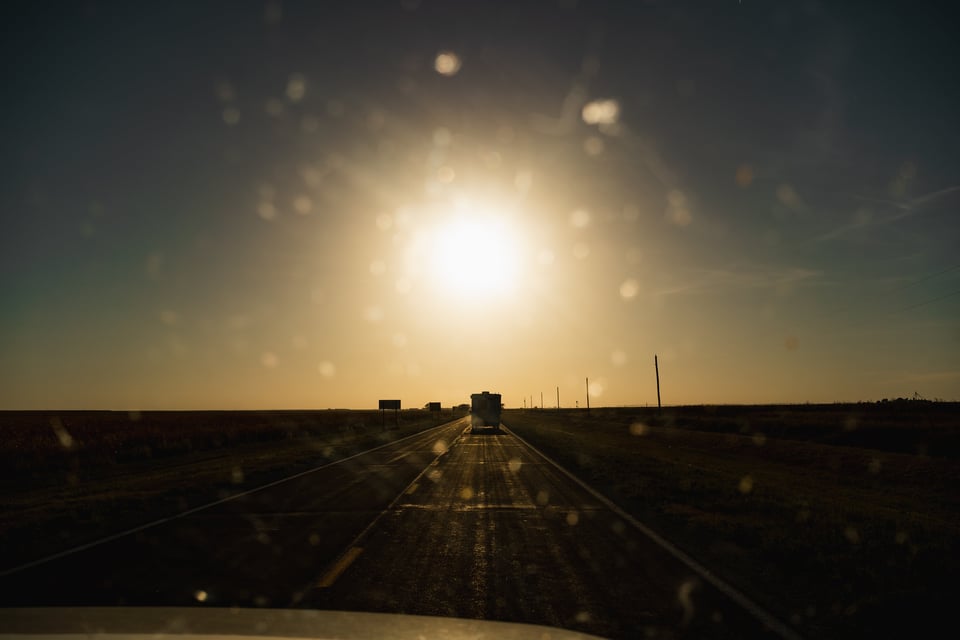 The gusts are relentless. Holding the rig steady is difficult and fatiguing, so Jen and I switch up to give each other a break. A Chipotle stop for lunch. Research on possible hotels near the KS–CO border comes up short, so we decide five hours in to keep hustling. We settle into four more hours behind the wheel.