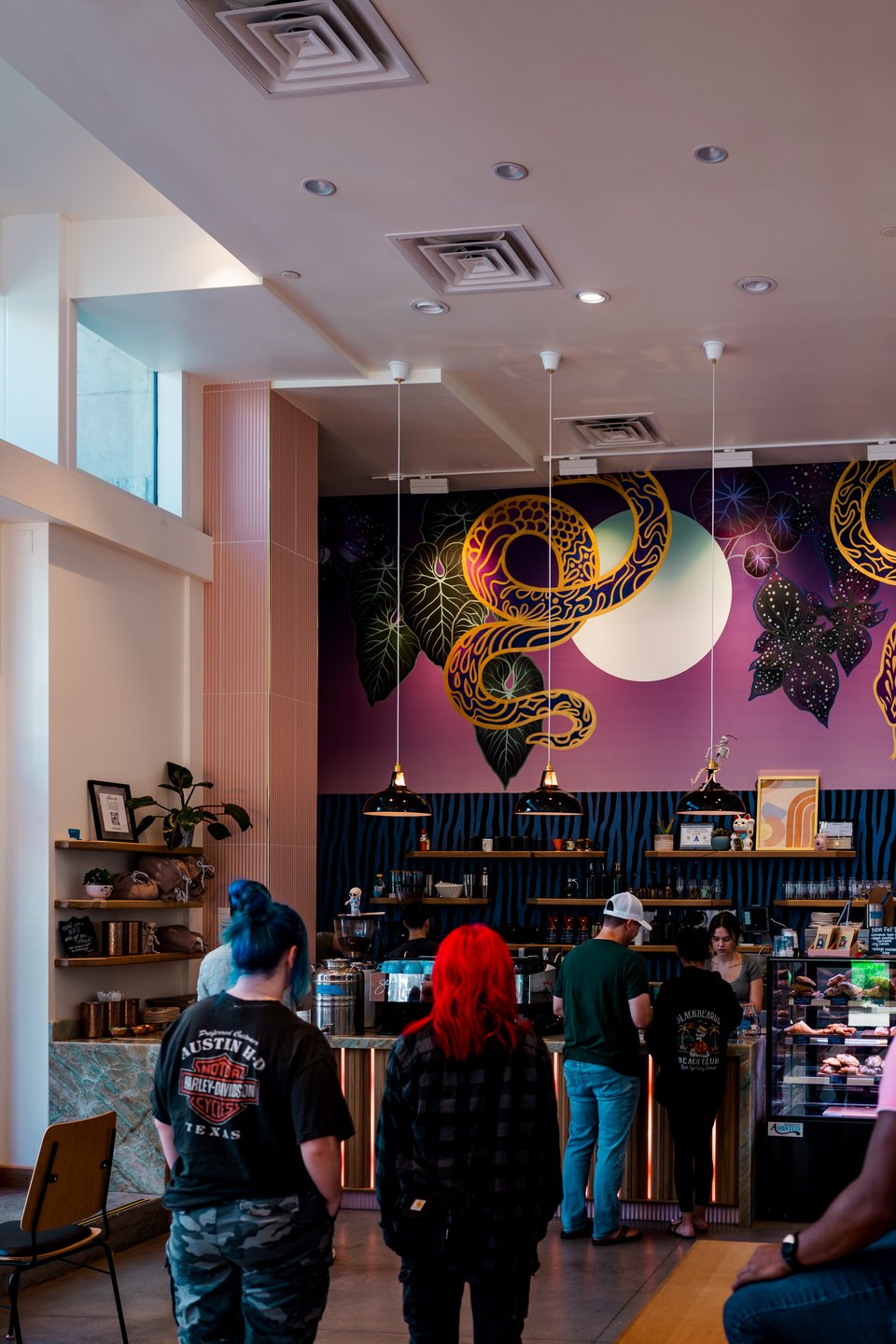 Water, food, and propane supplies are low. Today is resupply day, better known as “road chores.” We swing by Trader Joe’s for a few basics. Mothership Coffee is in the same shopping complex, and a bit of work beckons, so we post up for a bit.