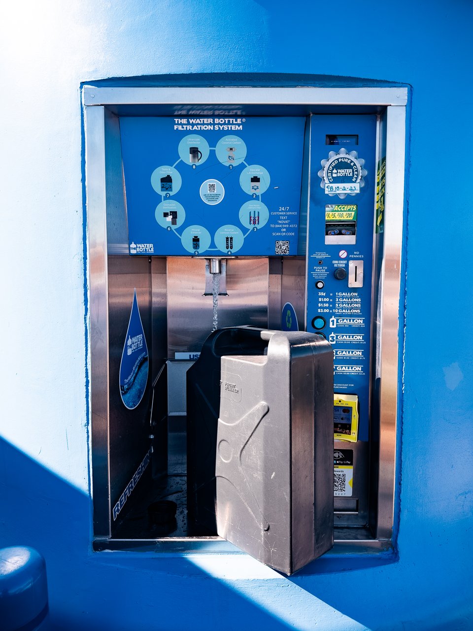 Water and propane are next on the list. I can’t find a propane refill station nearby, so I switch my attention to water. A search reveals a spot called The Water Bottle. We’ve used similar services before, but this particular one has some real character.