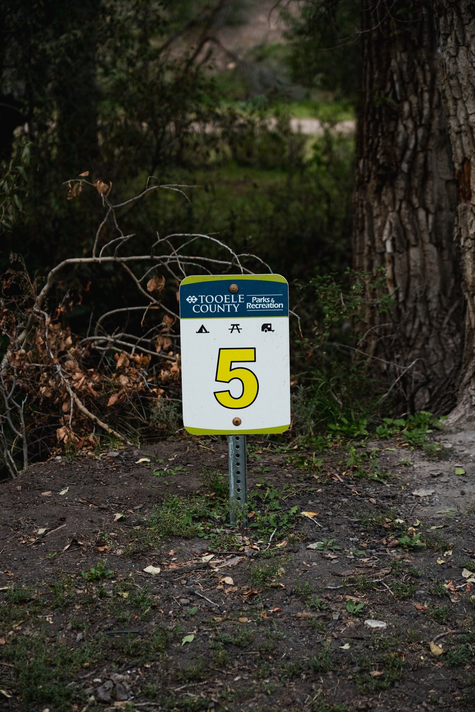 It reveals itself. A well-kept fee campground with 18 numbered sites, a creek winding throughout, a fire pit, a grill, and picnic tables at each site. A vault toilet, even! Though not our normal set-up for camping, this was worth every bit of that $15 nightly fee.