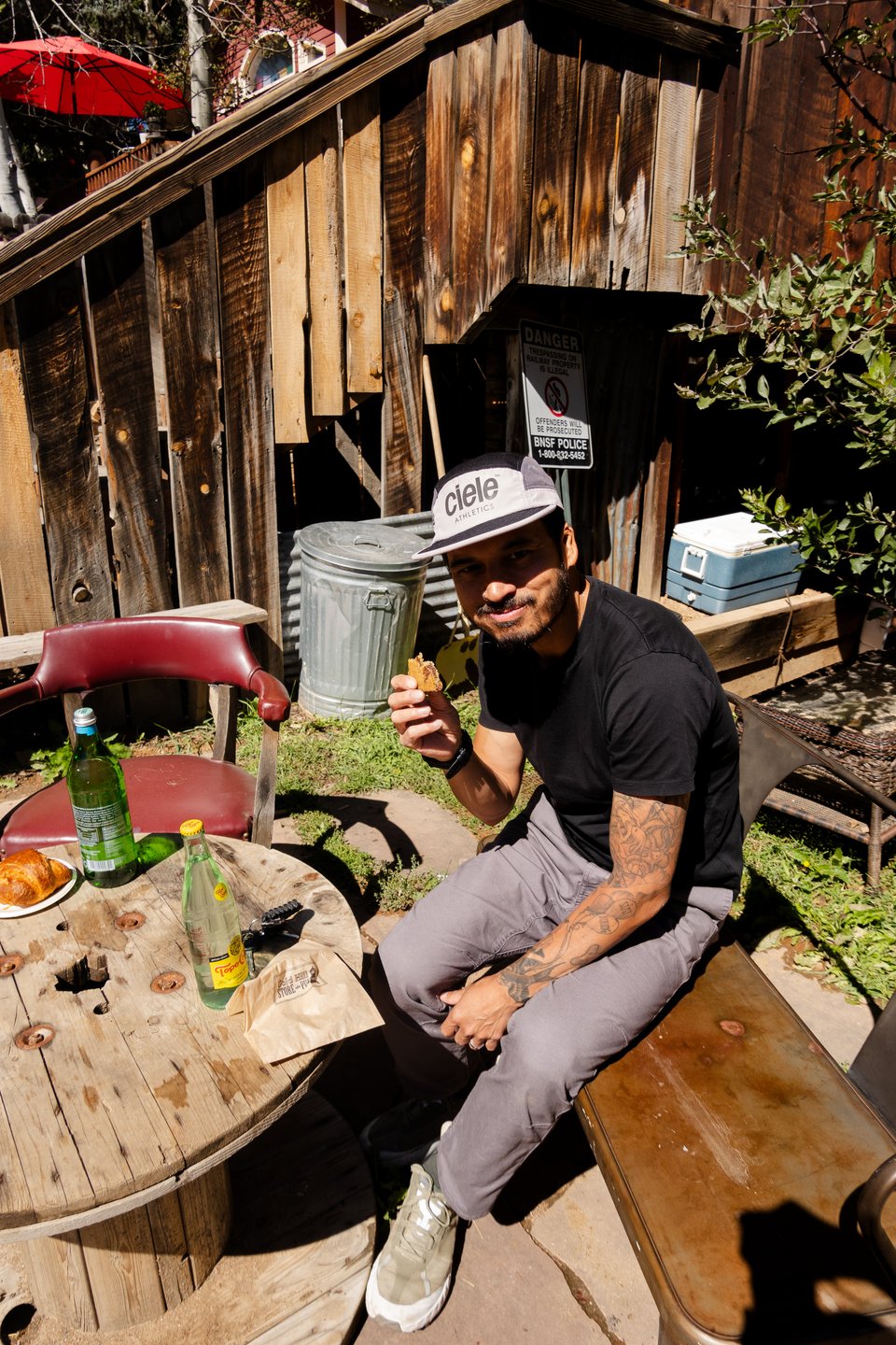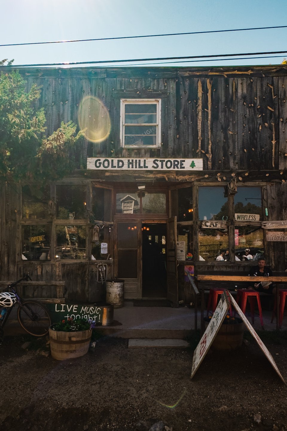 Next up: the infamous Gold Hill. I’ve known about it via cycling circles with many riding to the Gold Hill Store to eat pie, get provisions, and sip drinks. We’re at 8,000+ feet, and the cyclists are making it look easy. It’s only 62ºF, but it feels like 80ºF while we sit out back with a chocolate chip cookie and a Topo Chico, enjoying our surroundings. In fact, our new IRL friend Ty Brookhart works and resides in the area.