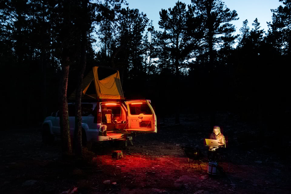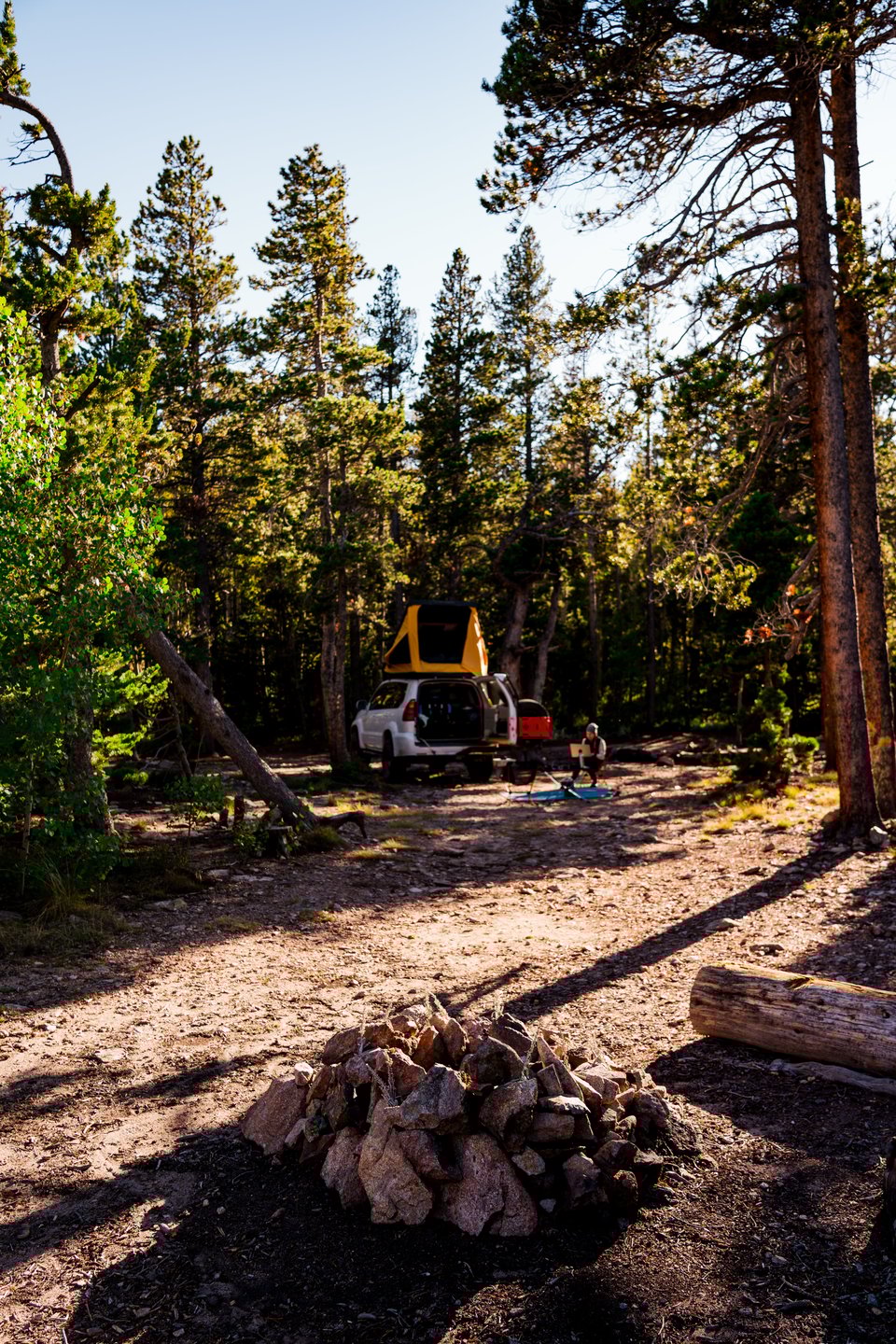 We’re camping tonight. We wanted at least one night out here, and despite a Saturday, we take our chances mid-afternoon and head to one of the local dispersed areas. We luck out and set up camp at one of the last spots.