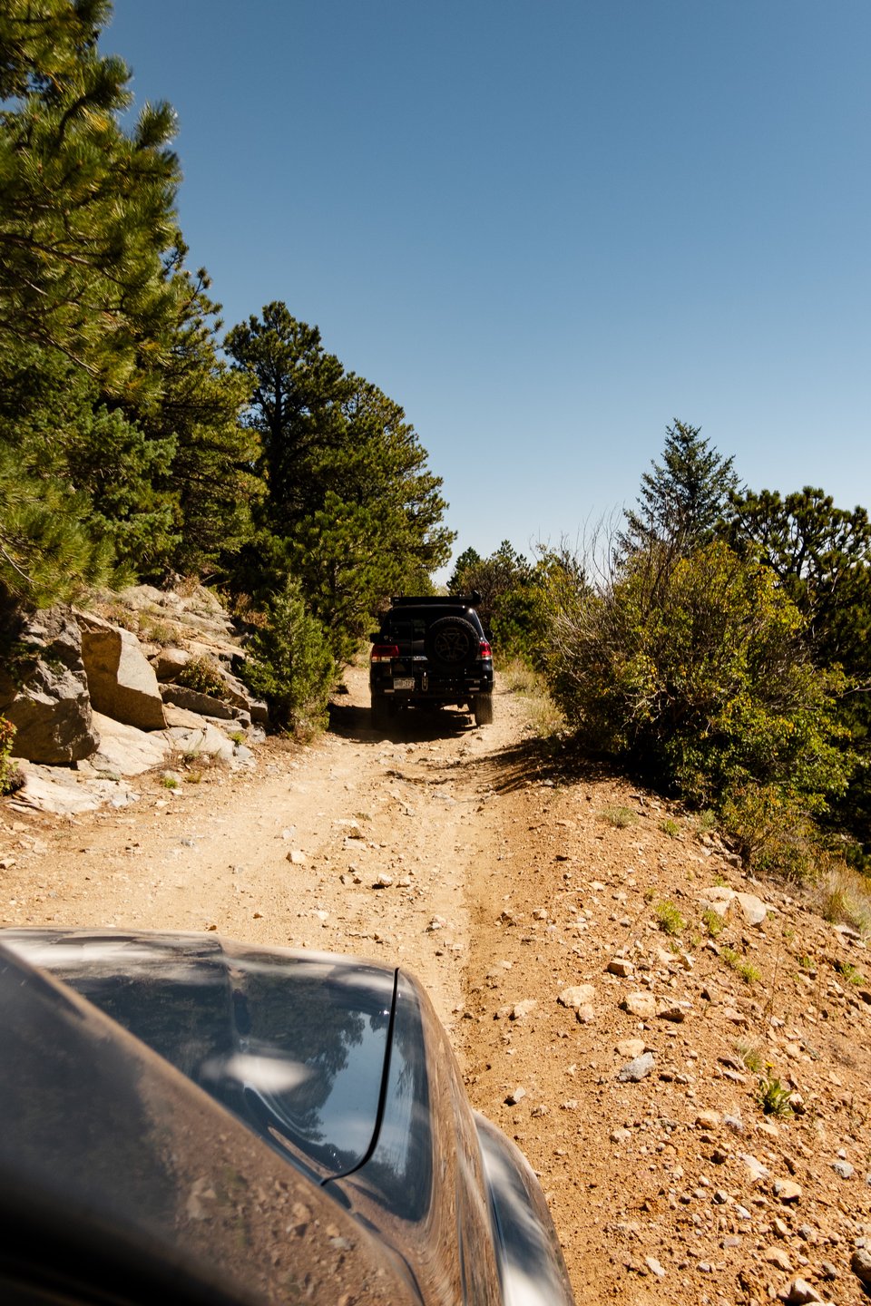 We quickly hit dirt and start the western ascent, passing plenitudes of outdoor enthusiasts of all kinds — cyclists, trail runners, and dirt-capable (and some not-so capable) vehicles.
