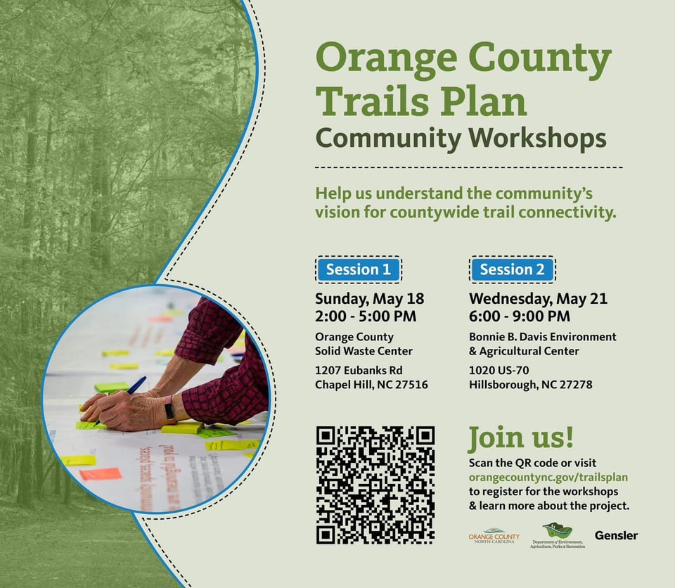 The County Parks folks have invited the community to meet and share input on the possibility of future trails. Please come out to Session 2 WEDNESDAY NIGHT 6-9 and represent the Wendy Olson Arboretum’s initiative to connect to the River Walk and Mountains to Sea Trail.