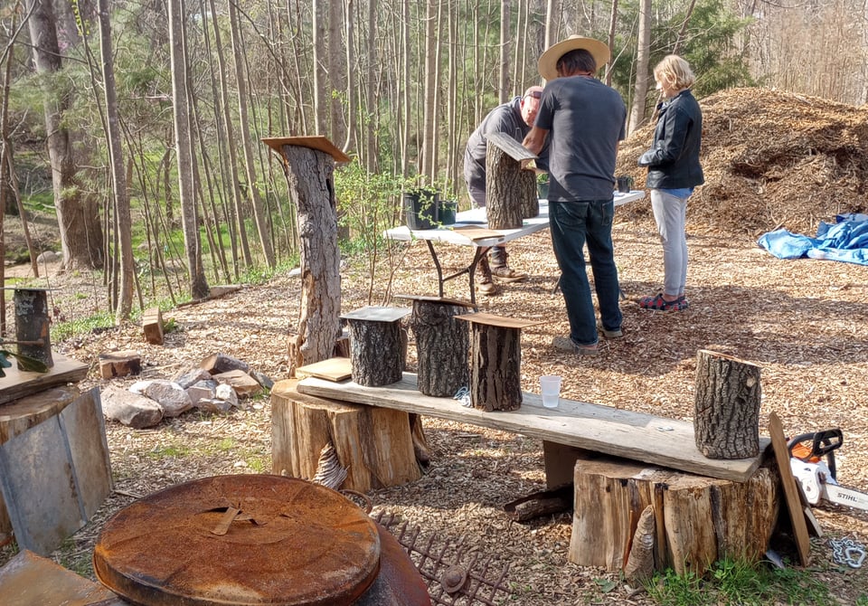 The birdhouses are made from hollow logs, and Brooks will be on site to customize your birdhouse by drilling a hole at the proper size for the type of bird you want to attract!