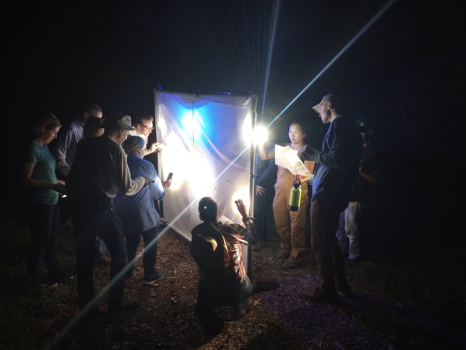 And here are some pics of the group checking out all the moths and other night creatures hanging out on the viewing collection sheet: